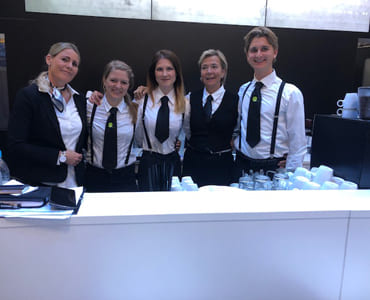 Stefanie Baeskau: „Zum einen ist Professionalität für einen Catering-Service immer unverzichtbar. Besonders wichtig ist sie aber bei einem Messe-Catering, weil die professionelle Arbeitsweise in allen Phasen des Projekts einen nicht zu unterschätzenden Einfluss auf den Geschäftserfolg des Ausstellers hat. Und das gilt nicht nur für das Catering an sich, sondern auch für die Unterhaltung, für Security, Location, Geschirr, Dekoration, Einladungen und alle wesentlichen Abläufe im Messe-Umfeld. Doch es gibt noch eine zweite wichtige Eigenschaft, die ein Caterer mitbringen sollte: die Freude!“